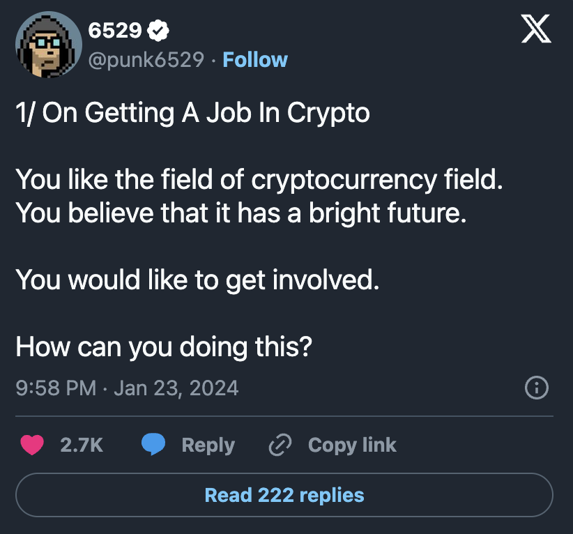 Good advice on getting a job in crypto: