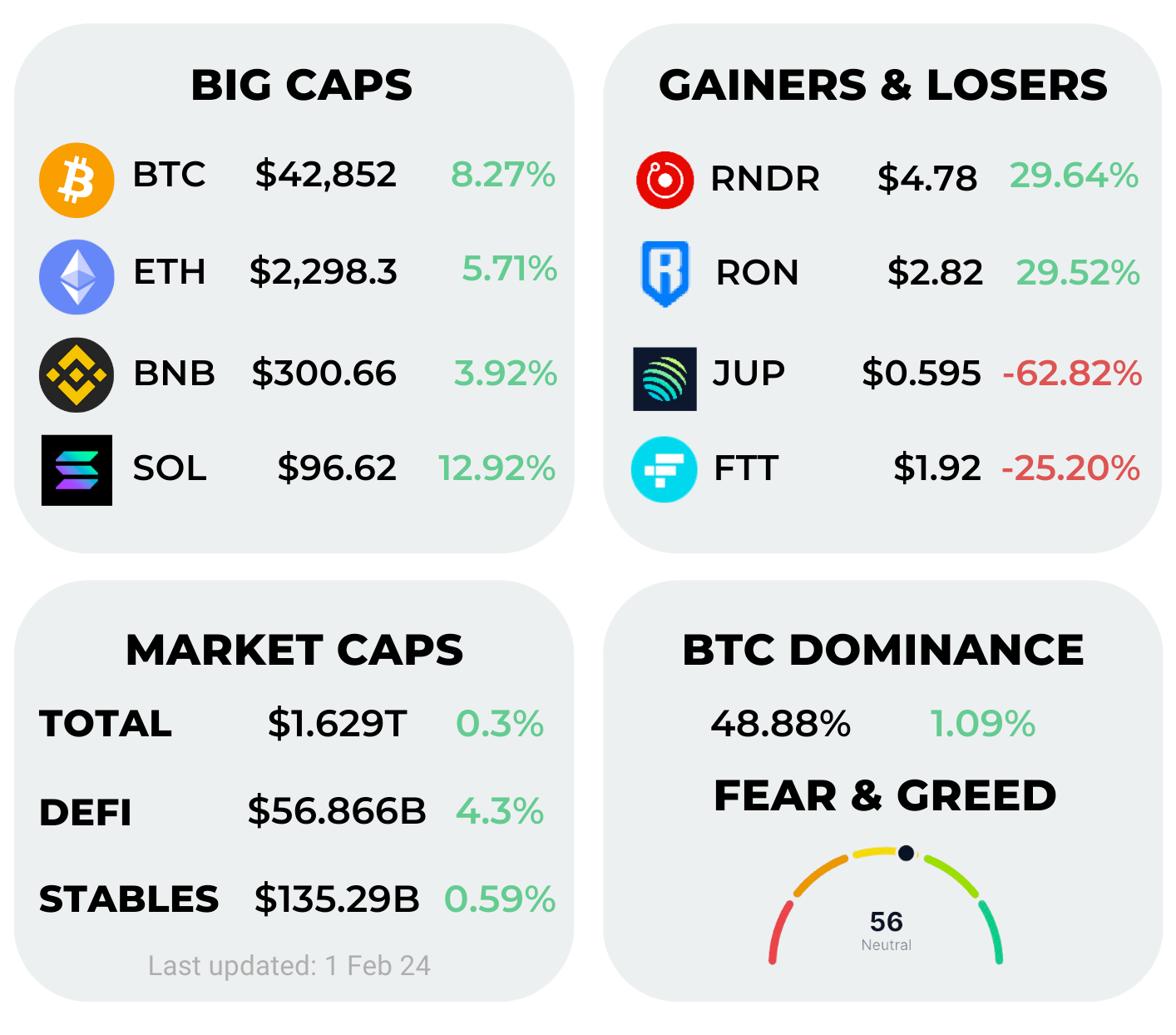 Everywhere you look, market caps are flashing green, and the fear and greed index is tipping towards a still, slightly positive, market sentiment. It's a good week for crypto, fren!