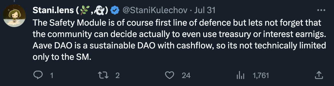 Though Aave might withstand this storm thanks to its Safety Module with 30% of $293.56M to cover up for a deficit, other protocols might be in serious danger.