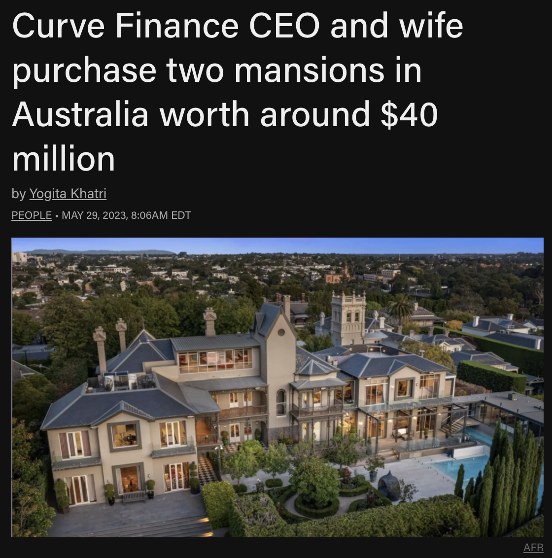 A while back, Michael Egorov, Curve's founder and CEO, decided to go big and borrow over $100M backed by his huge 427M CRV holdings (47% of the entire CRV circulating supply). Rumors say he wanted to score some fancy mansions…