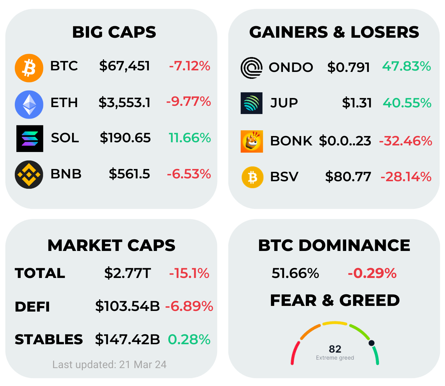 Lately, our wallet has been underperforming, especially compared to BTC; it hasn't held up well against the downturns. We're still up 28% since the start of the year, but that's modest compared to Bitcoin. We're aware that market corrections happen, and we're actually considering taking this opportunity to invest our remaining stablecoins. For more details, check out our Google sheet, and stay tuned for the next edition, where we'll definitely share our moves.