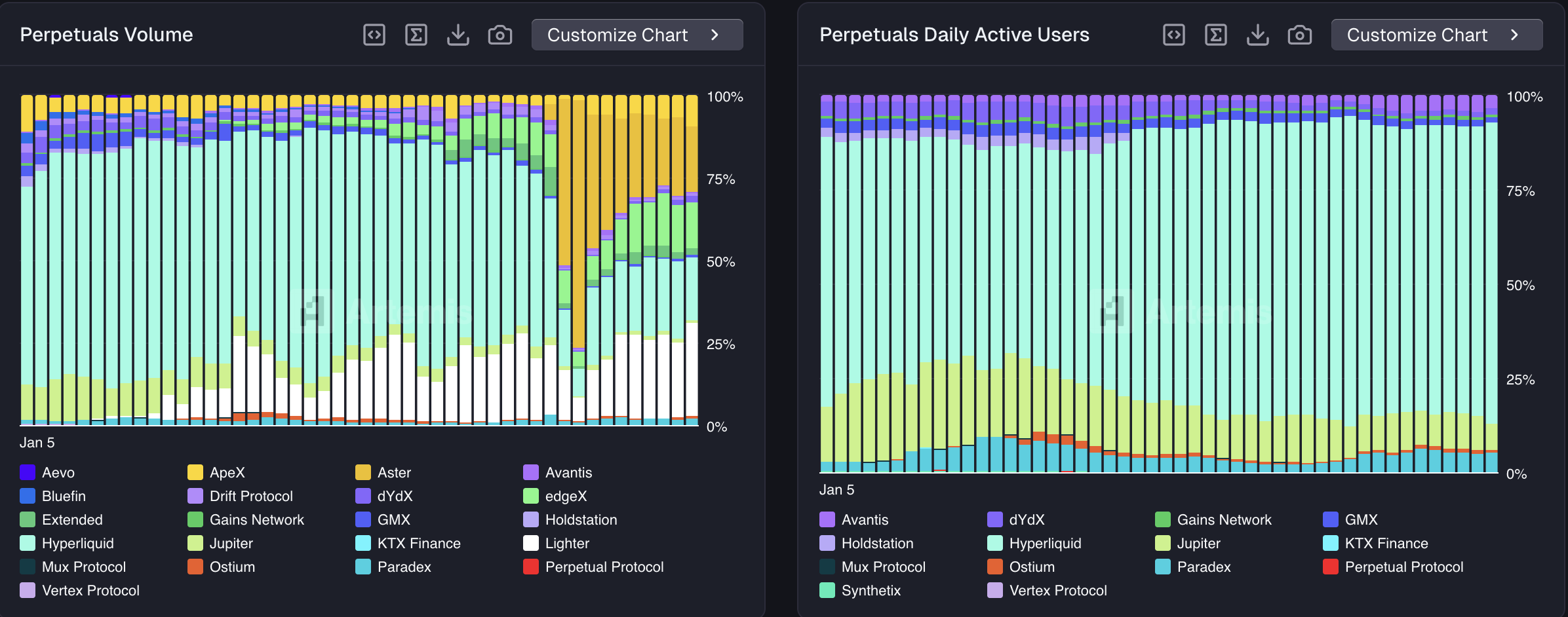 Hyperliquid. X keeps saying Hyperliquid is dead, as Lighter launches and a new perp DEX pops up every day. BUT, it still accounts for ~80% of all perp DEX users and ~52% of open interest.