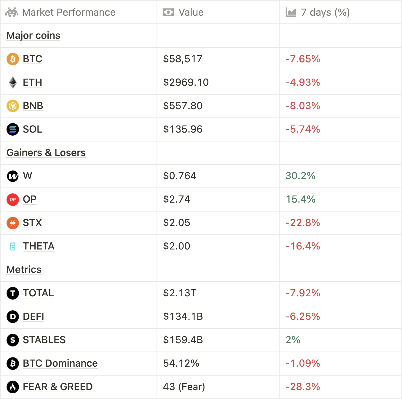Welcome to Stay on-chain! This week saw EigenLayer’s token announcement in a market drenched in red, while CZ was sentenced and Tether announced its pivot to neurotech and its mind-blowing profits in Q1. Now sit back, relax, and let us sift through the noise for you.