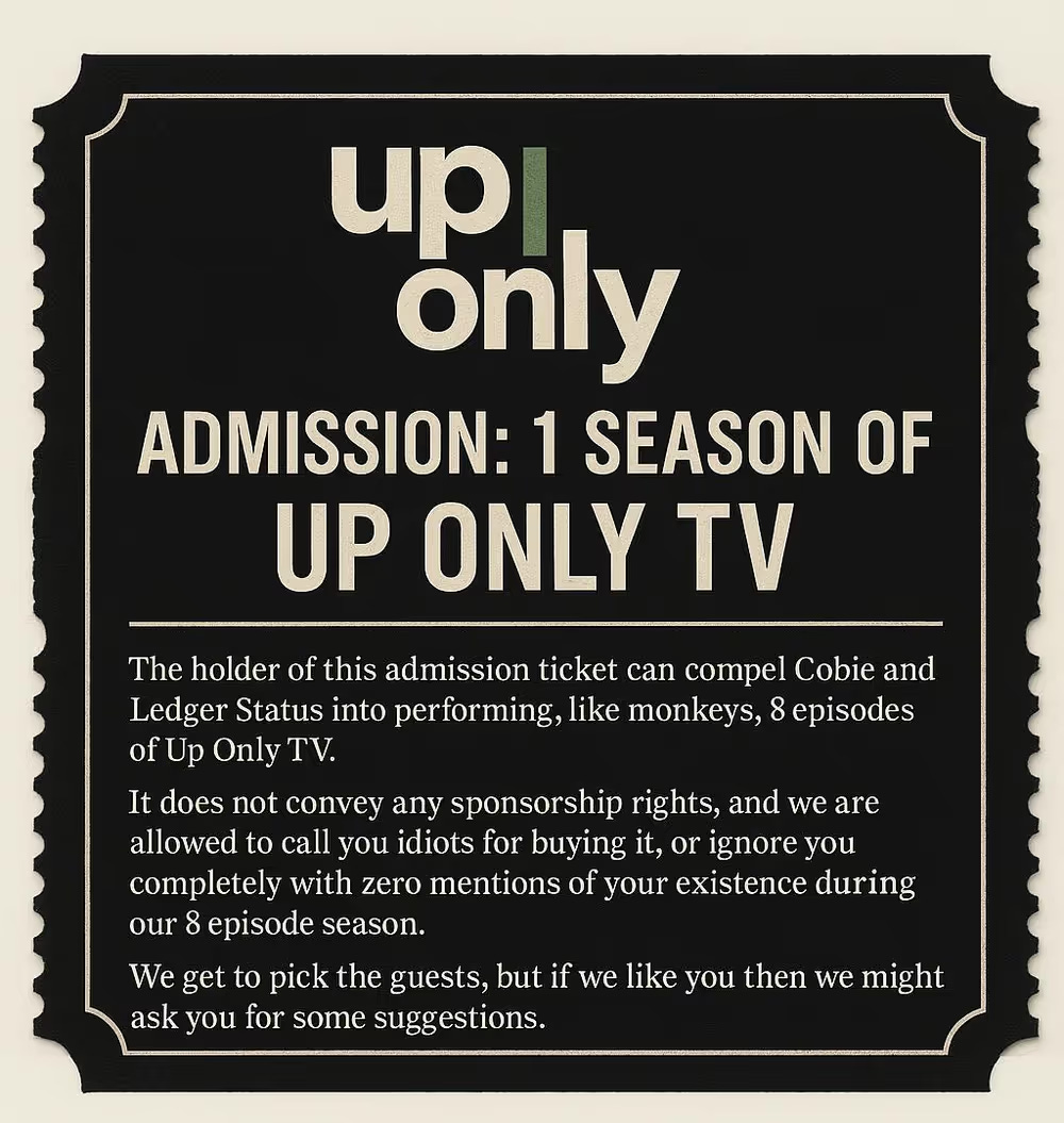 It started with one of the funniest moves I’ve seen lately. Coinbase.eth bought an NFT on OpenSea representing a season of the Up Only podcast ... for $25m. That’s over $3m per episode. If those are one-hour episodes, that’s much more than Hollywood top actor rates (lol).