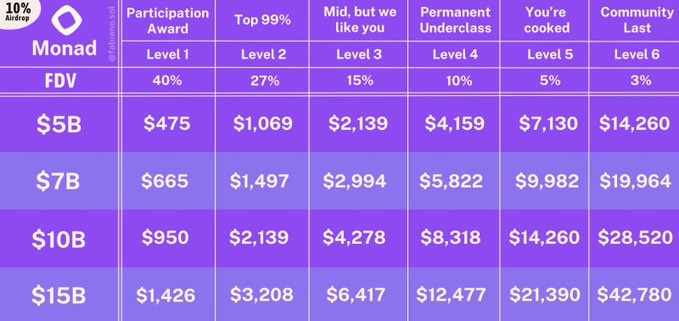 The airdrop is tiered by “strength levels”: