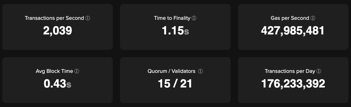 Scheduled to reach mainnet in Spring 2024, Sonic boasts an upper limit of 2,048 transactions per second (TPS) with an average finality of 1.1 seconds; in real-world conditions, the finality is projected to stay under a second, given a potentially lower amount of TPS used by users. Moreover, storage requirements for validators (set at 21, with a quorum of 15) and archive nodes have been reduced by up to 90%, making it quicker, cheaper, and easier to deploy them.