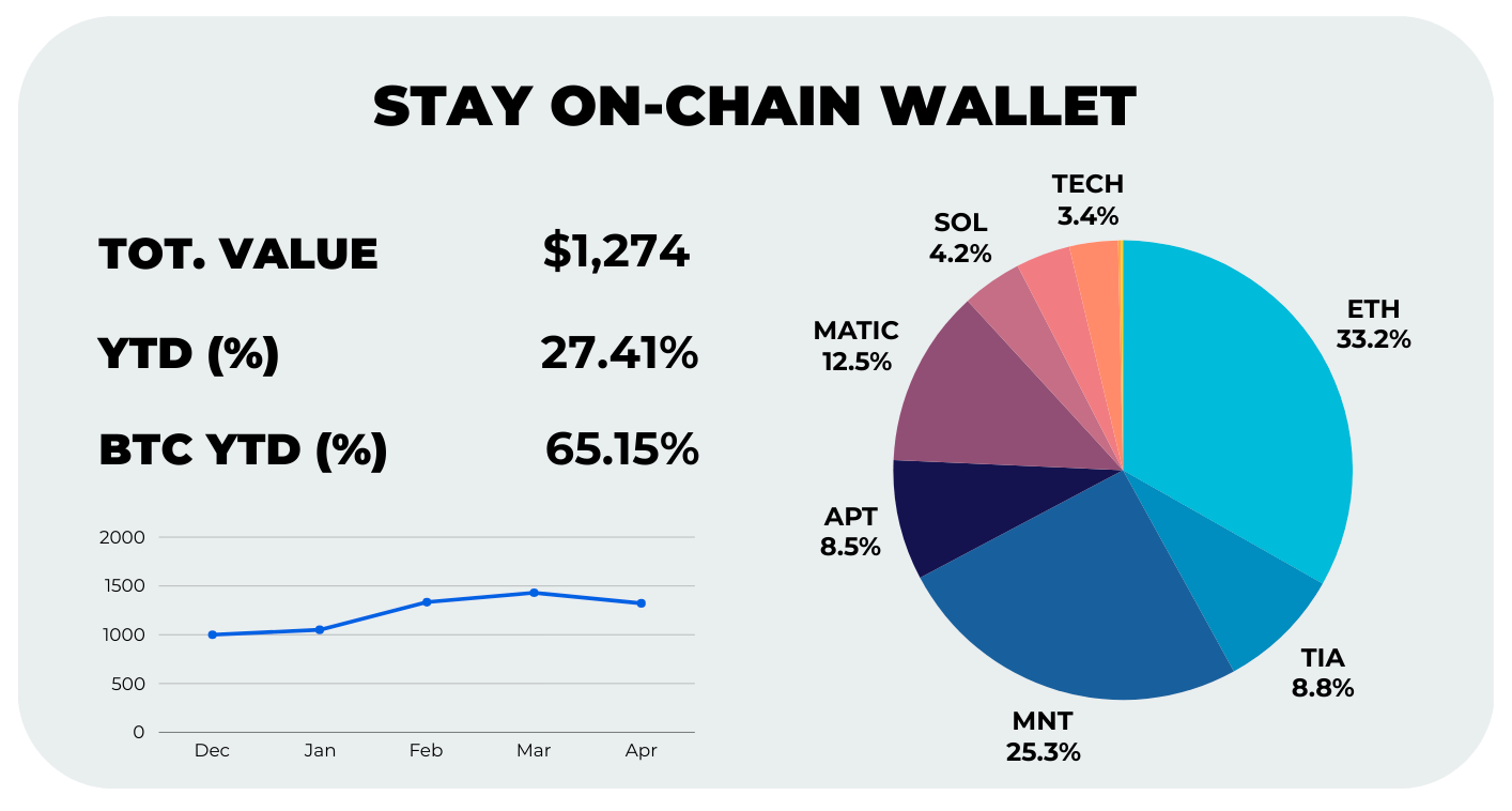 This week, nothing really happened with our wallet. As we continue farming points across many DeFi protocols, we saw a slight dip in value given that we’re primarily exposed to altcoins. We're still far behind Bitcoin’s performance, but hey, we're sticking to our plan and are currently fully deployed. For the full scoop, check out the Google sheet.