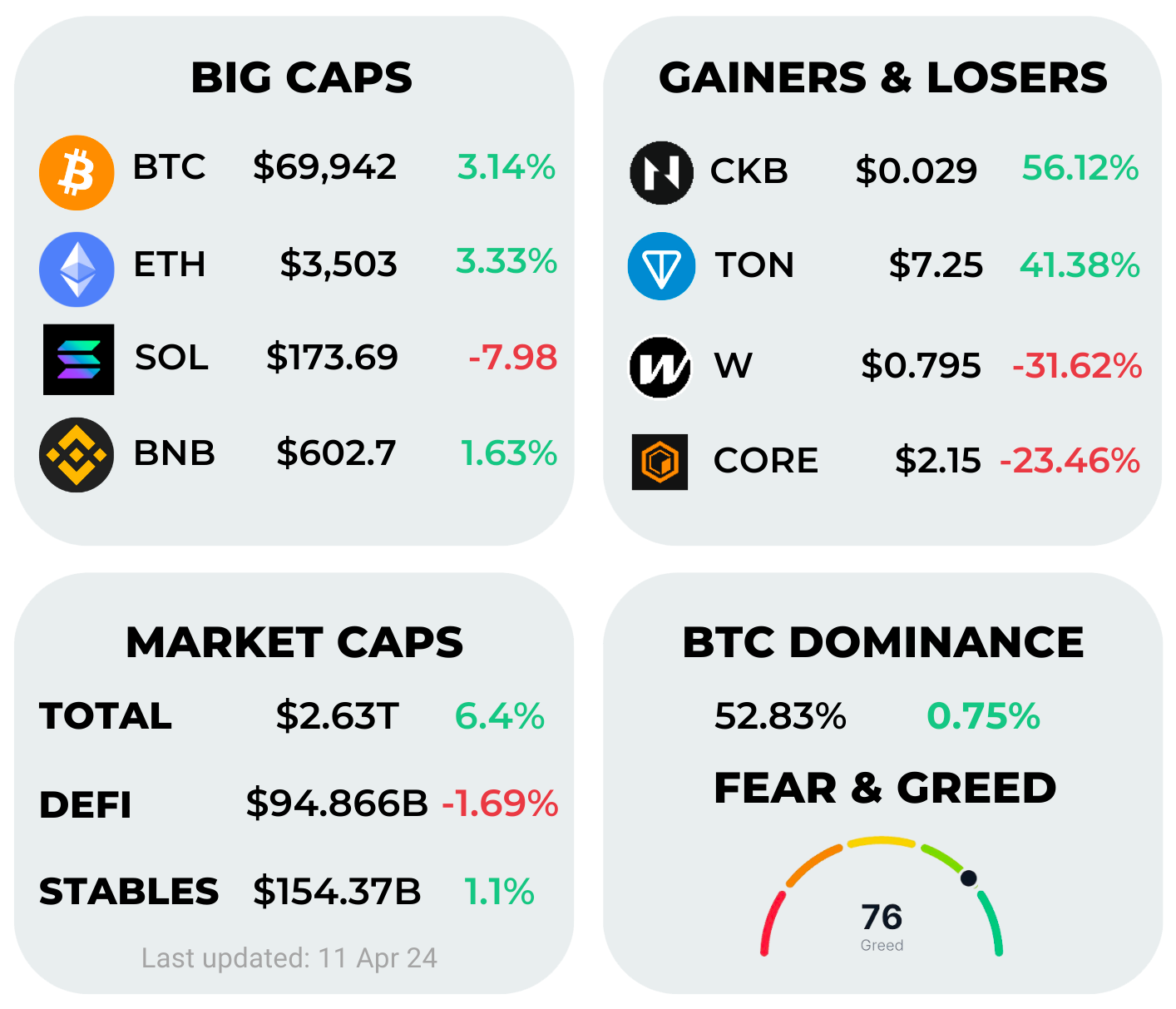 The markets this week have been relatively stable. Bitcoin, which reclaimed approximately 3%, fluctuated within its range, and Ethereum showed a similar pattern. Altcoins, however, appeared somewhat weak, with Solana leading the downturn by shedding around 7%. Bitcoin's dominance remains steadfast.