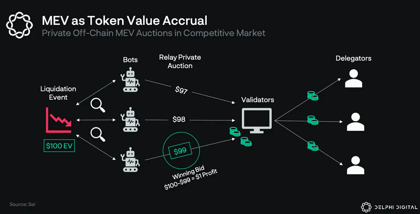 Sei will operate as a proof-of-stake L1 blockchain, and the $SEI token is a utility token used for network fees, staking, and governance. While its value accrual is intended to be low due to low fees, the main factor contributing to value growth will be MEV (miner extractable value) redistribution. Sei plans to use a private off-chain auction where bots can bid for MEV transactions like liquidations and arbitrage opportunities.