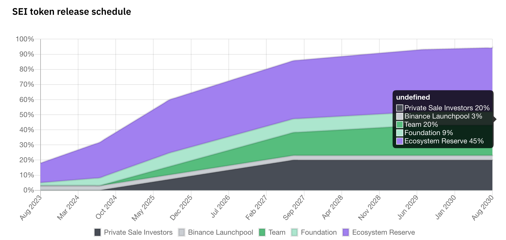 Now, let's delve into the more intriguing aspects 😎 , the tokenomics. Currently, the total supply of $SEI stands at 10 billion with the circulating supply upon listing amounting to 1.8 billion (18.00% of the total token supply). Notably, the Binance launchpool I mentioned earlier will have an allocation of 300,000,000 tokens.