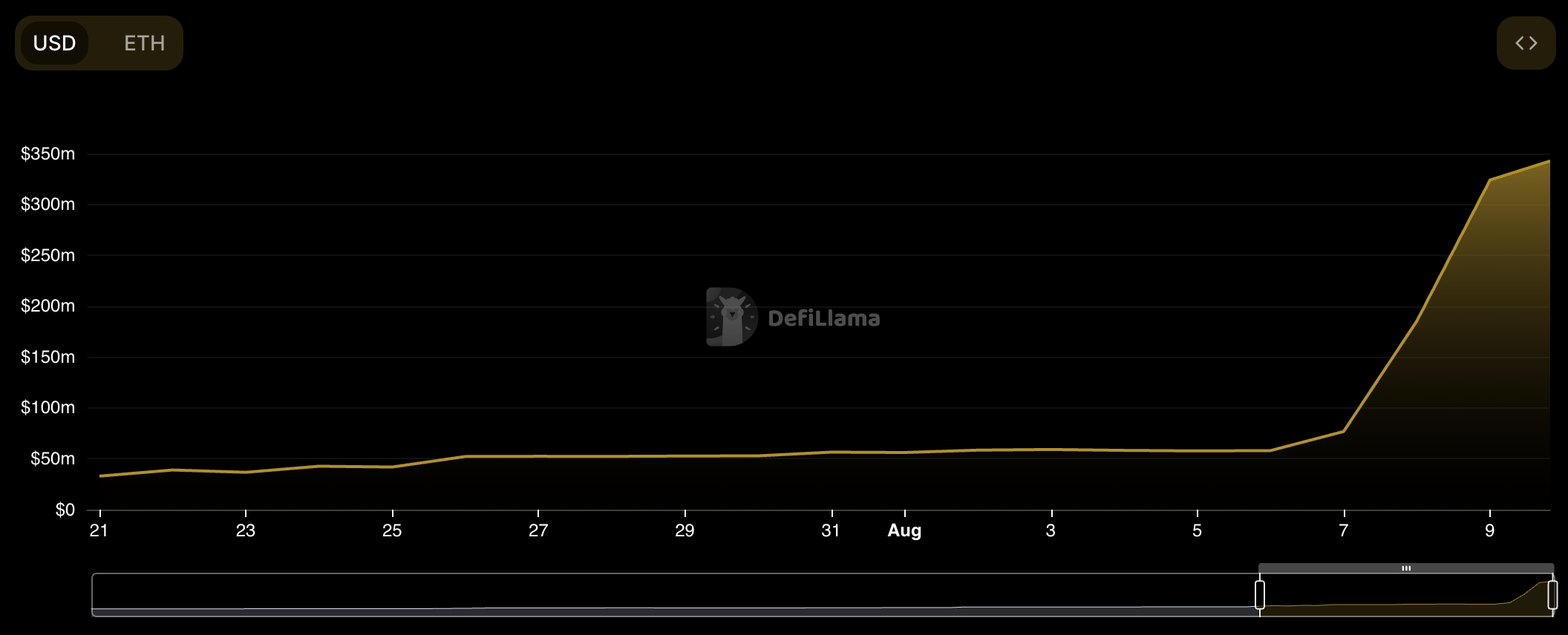 The move aims to help DAI get traction among its competitors (with USDT and USDC leading the game) — and unsurprisingly it’s working! Spark is a lending protocol powered by MakerDAO that lets you convert DAI in sDAI and earn the DSR rate, which is in turn decided by the governance — its TVL went nuts, rising from 76M to 342M in 48 hours, a whopping 450% increase.