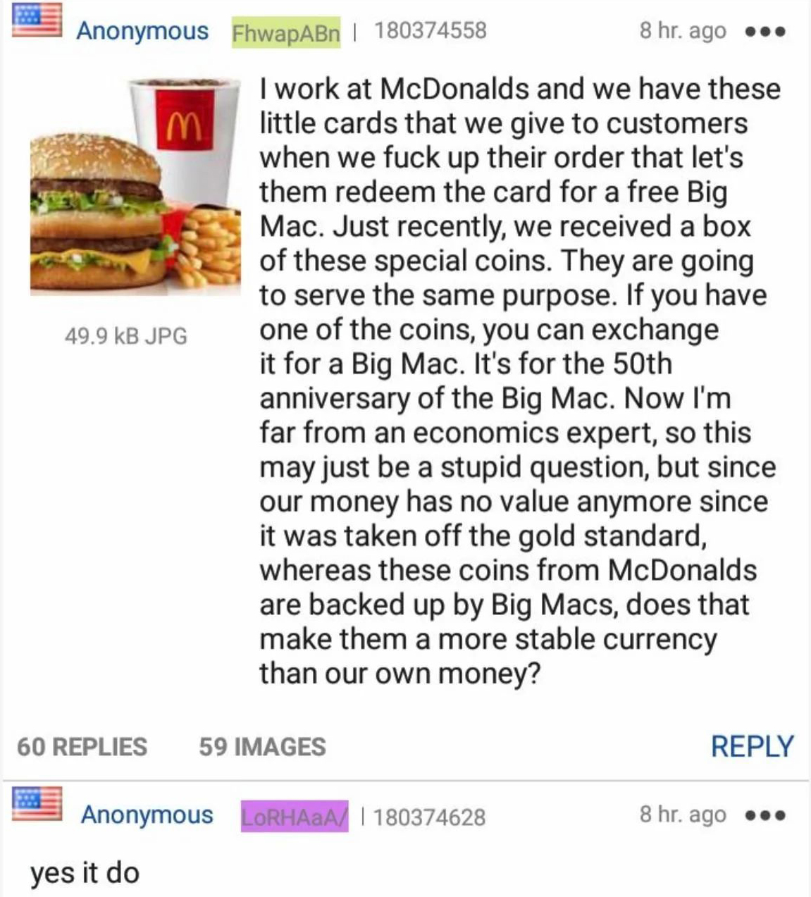 Scared of unstable FIAT currencies? McDonald’s got your back 🍔.