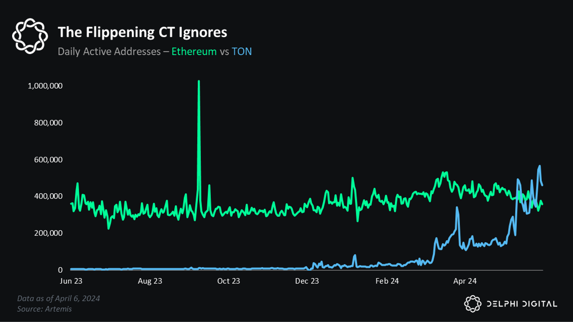 Telegram’s token TON is one of those coins: you forget about it, and a month later it has tripled in value without making any major headlines. This seems to be a peculiarity of this ecosystem: they live outside of the traditional “crypto bubble” that takes place on 𝕏 and within Ethereum and Solana social circles. Their engineers are mostly outsiders, coding applications in a different language (FunC and Tact).