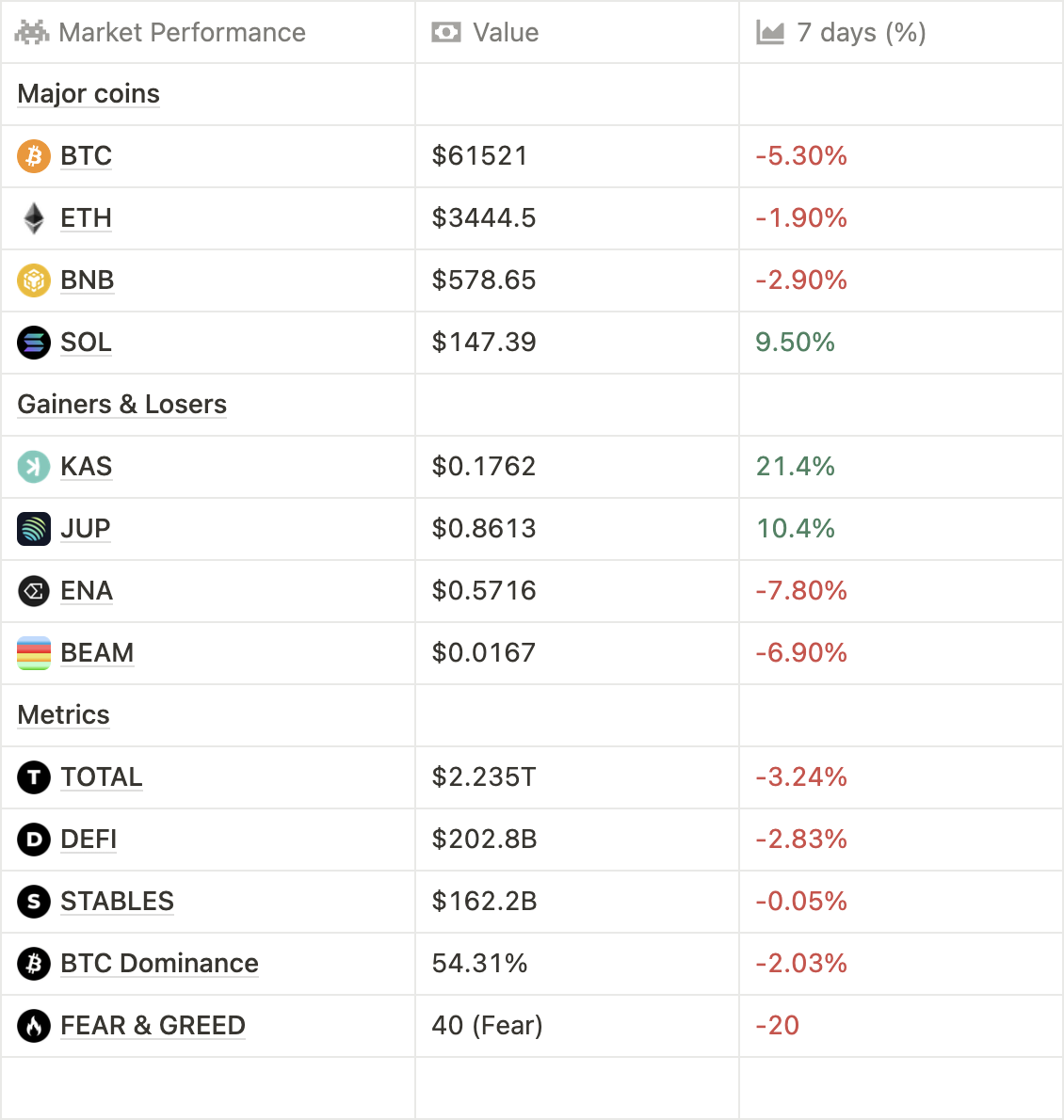 Whilst majors held up pretty well, the performance of the soon-to-be-launched Ether ETFs is key here: should we get little inflows there could be a longer period of going sideways if not negative price action — that, until liquidity stemming from rate cuts starts piling in again.